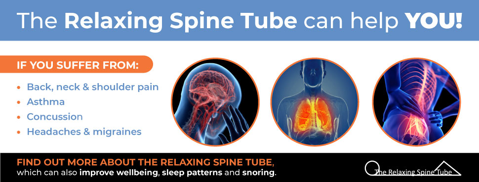 The Relaxing Spine Tube was designed to not only ease back, neck or shoulder pain (from poor posture at work or gardening) but, due to where it presses on the spine, it is able to relax or reset the nervous system. As I say to my patients, it “reboots your electrics”. This means that conditions which have any degree of stress or threat involved, for example in asthma where the individual struggles to breath or in concussion where there is trauma to the body, then the Spine Tube helps re-set the system. At our local rugby club where I work, we now include the Spine Tube as part of the protocol for return to play in concussion and persistent concussion syndrome, where it seems particularly helpful.